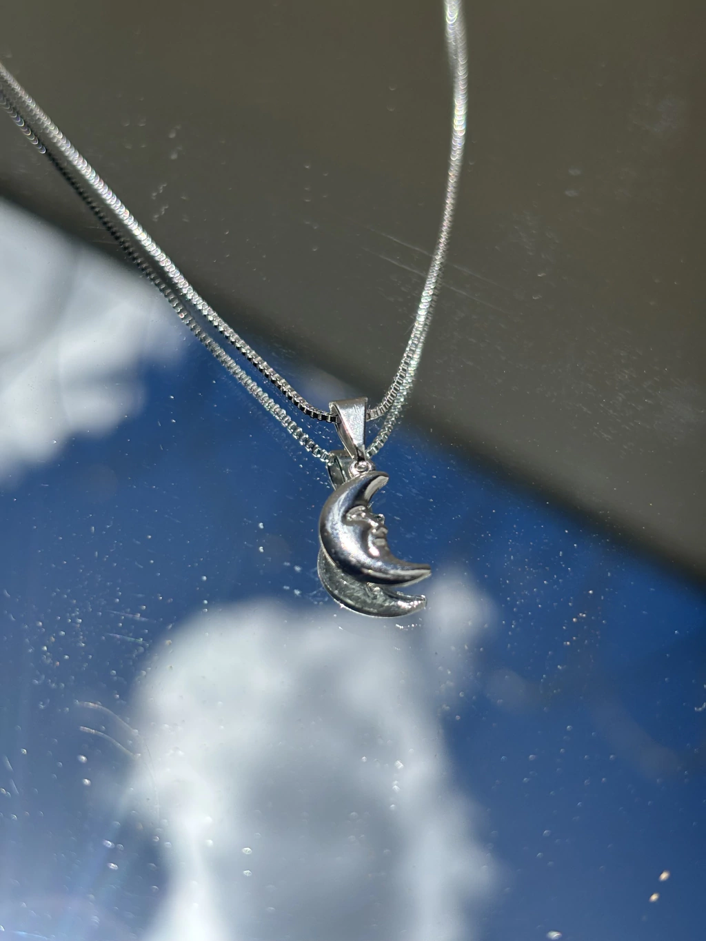 Esta peça é banhada a prata 70 milésimos, com dupla camada de verniz que garante proteção extra, além de ser hipoalergênica, perfeita para peles sensíveis. Seu design duplo traz elegância e estilo, com o charme do pingente em formato de lua, símbolo de mistério e renovação.
